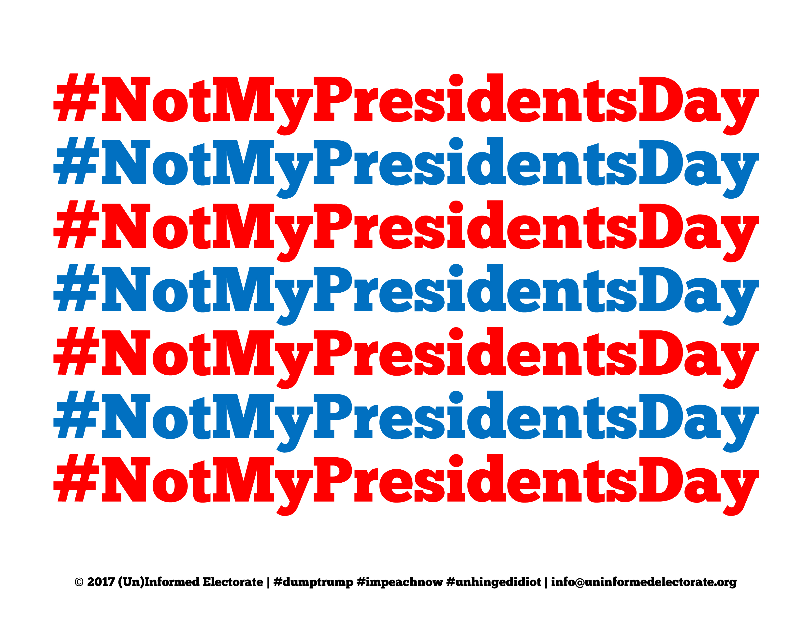 #NotMyPresidentsDay Posted on February 20, 2017 by peitharcho A PDF version can be downloaded here. Share this: Click to share on X (Opens in new window) X Click to share on Facebook (Opens in new window) Facebook Like Loading...