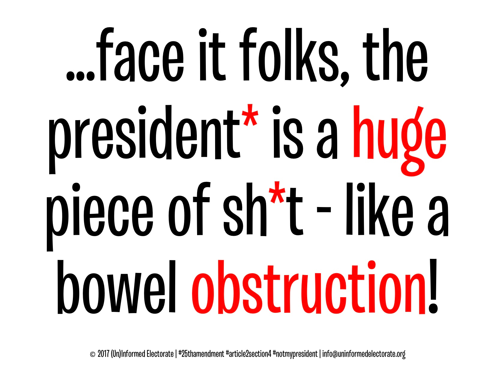 Alright everyone, stay with me here – do any of you know how to spell articles of impeachment? It’s time to get this mentally ill nincompoop out of the White House once and for all.