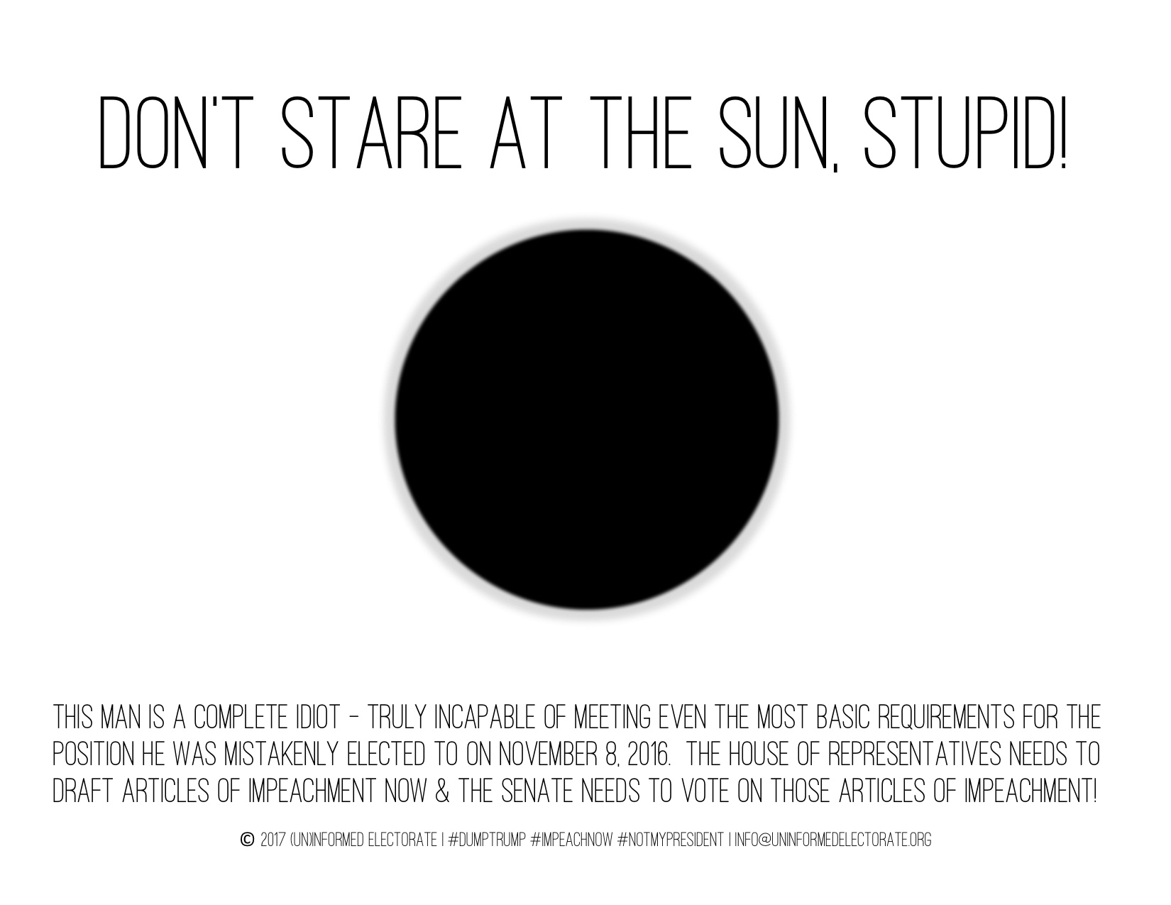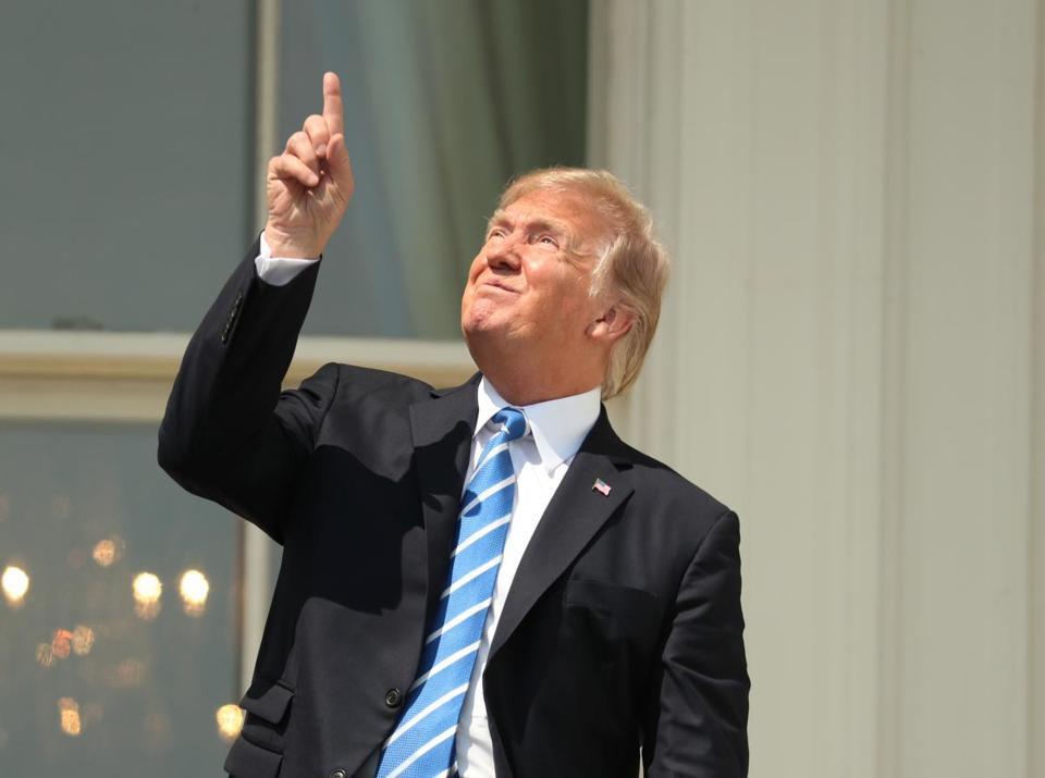 The Toddler-in-Chief™ decided to forego protection, (of course he did), while he was viewing the eclipse at the White House earlier today. What an idiot!