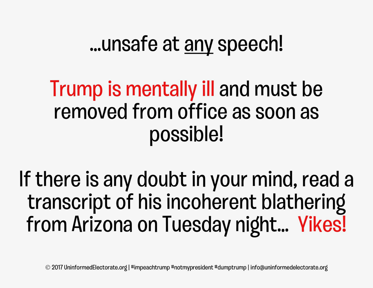 …seems ‘ole 45™ fell victim – once again – to self-destructive impulses, opting to veer wildly off script while ranting in Arizona and Nevada, (at least according to reports published by the New York Times here, here and here), earlier this week.