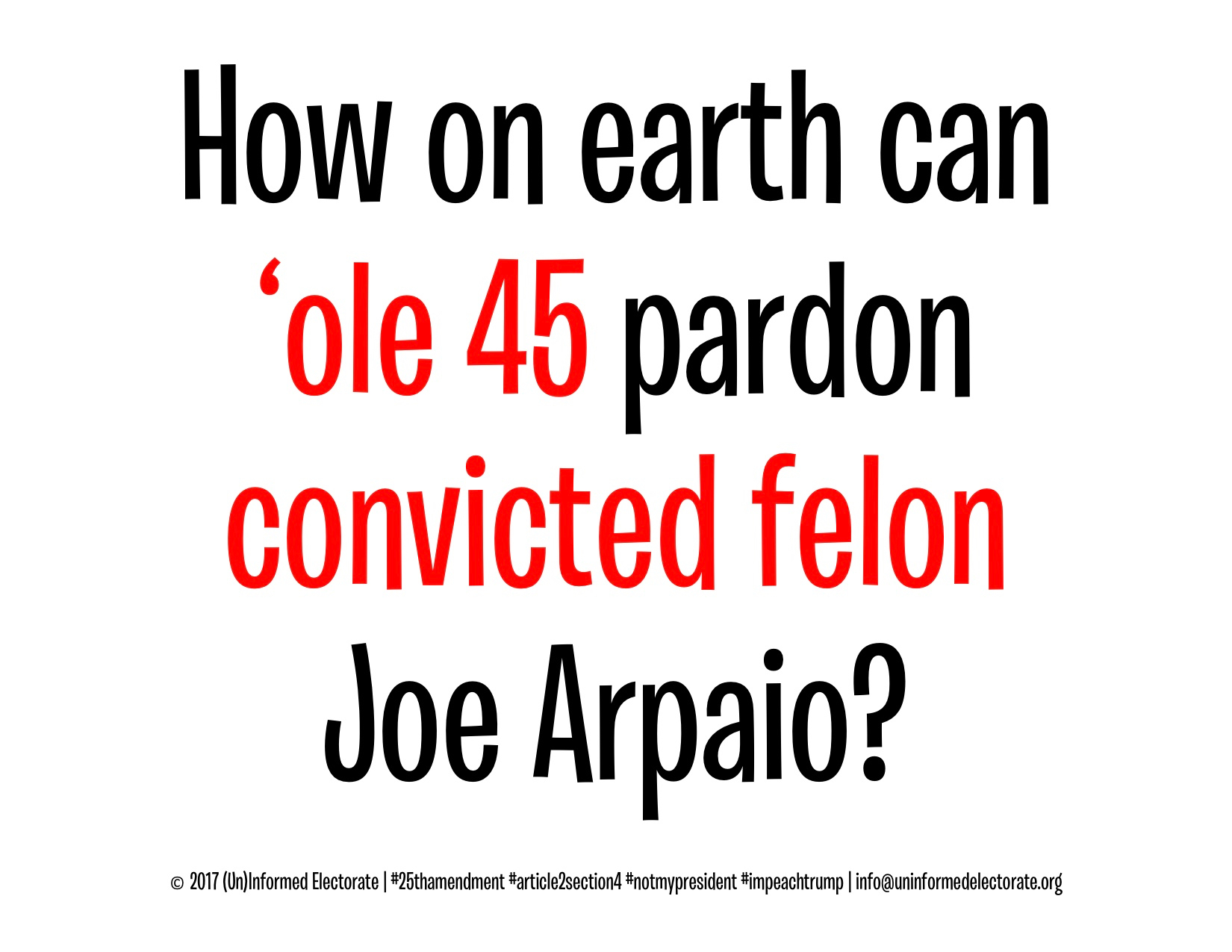 On Thursday, the New York Times Editorial Board opined about ‘ole 45’s™ threats, (well, they were threats at the time), of pardoning the now-convicted sheriff I labeled a truly contemptible constable way back in September of 2016. Well, a short time ago, (on Friday evening), ‘ole 45™ did just that, sigh… Criminal. Absolutely. Criminal.