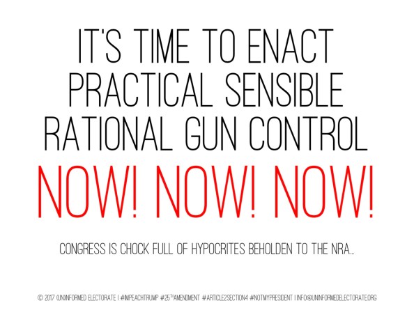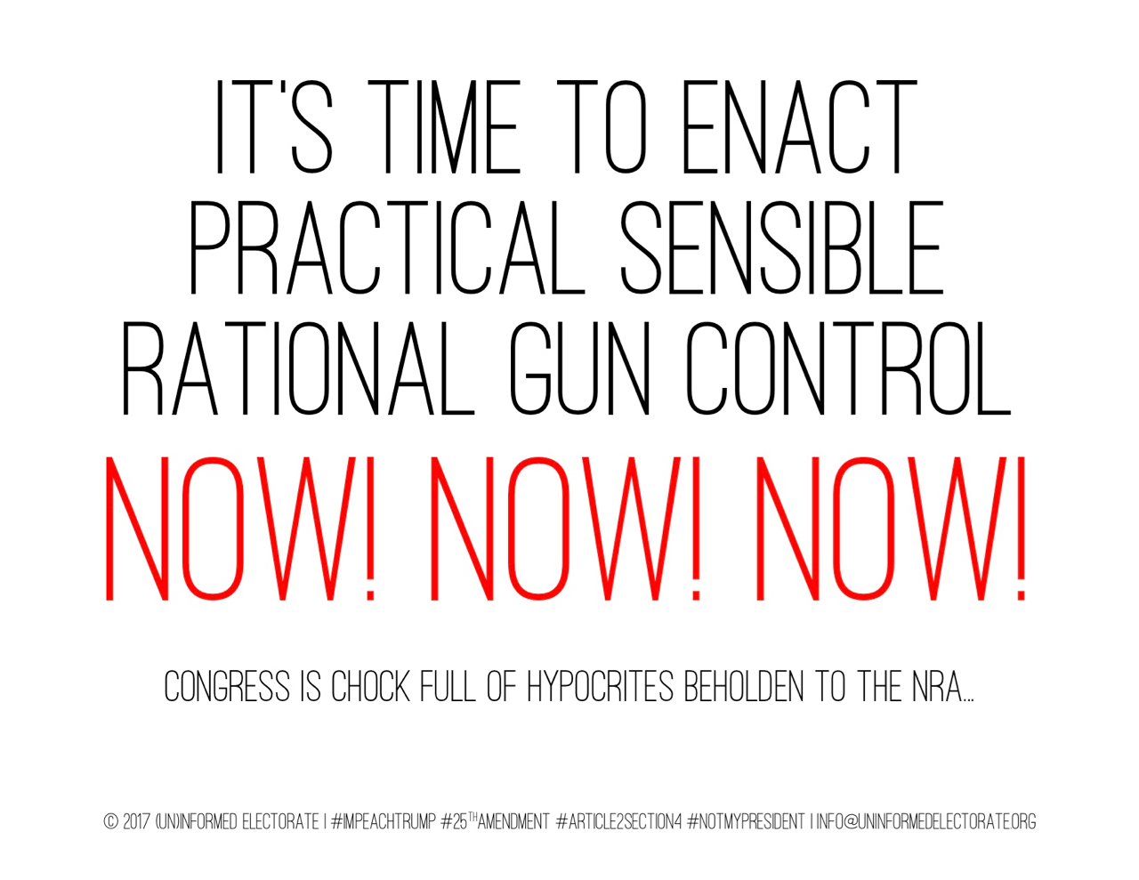 I don’t know if you’re as dismayed as I am by the hypocritical bullsh*t emanating from the pie holes of various and sundry members of Congress since Sunday’s horrific mass shooting in Las Vegas, but I suspect this is all we’re going to get – more meaningless platitudes, more carefully qualified, more incredibly sterile – statements crafted to appease the sheep, er, uh, I meant electorate, whilst not upsetting the gun-toting nut-jobs, (a.k.a. the NRA), lurking in the shadows…