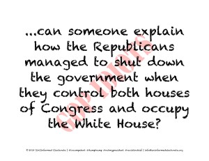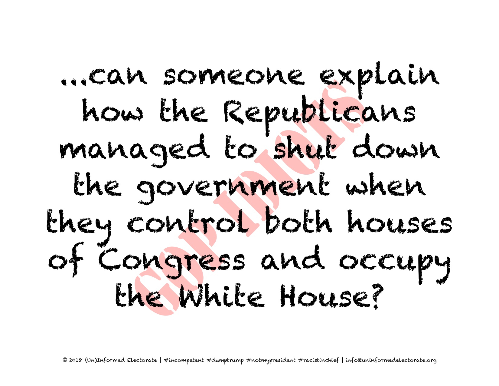 Take a moment to scan this rather illuminating timeline, (also published by The New York Times), which chronicles how this so-called “crisis” was manufactured by the Republican majority in Congress, (many of which now wandering aimlessly around inside the Capitol Building), as well as the bloviating idiot trapped inside the White House, (despite the fact he really wanted to be in Florida).